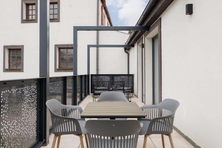Prostorný dvojlůžkový apartmán s ložnicí, obývacím pokojem a 20 m2 venkovní terasou s výhledem na celý historický areál. V apartmánu najdete nejen pohodlnou manželskou postel s kvalitní matrací, ale také plně vybavenou kuchyň s barem a jídelním stolem, koupelnu s vanou i sprchou, kávovar Nespresso a pracovní stůl. Užijte si